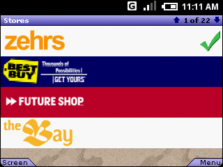 JavaME for Android : ME4Android Since the Android SDK came out last week, I've been toying with the idea of porting ME4SE into Android as to make it as easy as possible to port over current JavaME code. With ME4Android, I wanted the porting to be done automatically so no lines of JavaME code would need to be modified but only the build scripts, so targeting Android would only require a rebuild of current JavaME code. On my first pass at ME4Android, I used our rather large JavaME app called FlyerApp as the test app. This code is done completely on top of Canvas so it only uses JavaME's low level user interface libraries. The code uses a few threads, supports animations and does networking. I figured if ME4Android can run FlyerApp, it will be able to run a lot of Java games too. In the process of getting FlyerApp to run on Android, I came up with a lot of roadblocks, some architectural and some bugs that I intend on submitting to Google once there is a formal way of submitting bugs on Android. To see the exact same (i.e. identical) app run on Blackberry and JavaME phones (Samsung A920/A900, SonyEricsson K790, Motorola V3xx, and others) click Here . On this page you can see screen shots and also download the .jar and .cod files. FlyerApp user intructions Once program starts, press a key to remove intro screen. After that the program will ask you to configure the left/right softkeys (this is required since phones use different values for these and we target all phones with only one .jar file and want to keep it that way). If you are running the code on a real device without keys, you can click on the left/right buttons to set them. After that FlyerApp will contact the server to download a list of stores that have flyers available for viewing/searching. You pretty much use the left/right/up/down arrow and center/fire button for navigation. If your device doesn't have softkeys you can activate them by clicking on them. Clicking is *not* yet fully supported but does work for softkeys. Please note that the Dalvik VM shuts down the app due to excessive memory use, this is because we had to use a lot of extra objects to go around some bugs and platform deficiencies. This will certainly go away in the future. Try the app and let me know what you think. Carlos. MIDletActivity.apk